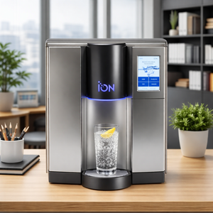 Sparkling, room temperature cold, and Hot (hot enough for tea!). Our ION water system is made in North America, hermitically sealed, touch screen and easy to maintain. Add in Torani syrups for low cost Italian Sodas in your office.